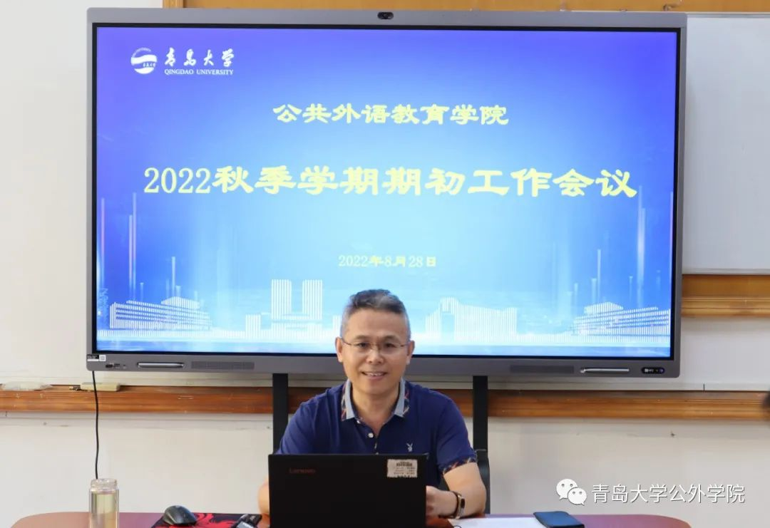 學院召開了2022秋季學期期初工作會議,學院黨委書記劉海榮帶領教師們一起學習了《習近平給外文出版社的外國專家的回信》,強調了師德師風和意識形態工作,要求老師們教育引導學生講好中國故事,為促進中外文明交流互鑒做出貢獻。