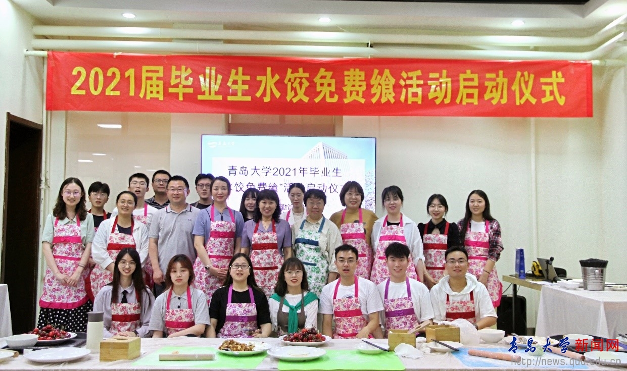 新聞網訊 6月8日下午,青島大學2021屆畢業生“水餃免費饗”活動啟動儀式在浮山校區仁園教工餐廳舉行。校黨委常委、副校長劉彩云出席活動,外語學院、自動化工程學院、商學院、機電工程學院、文學與新聞傳播學院、學生資助中心等學院的老師代表與畢業生代表參加活動。