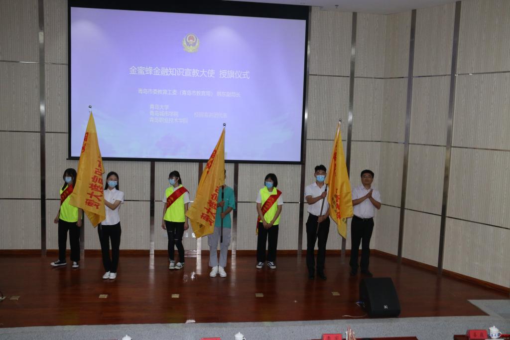啟動儀式上,青島市公安局領導和青島市委教育工委(青島市教育局)領導分別為青島高校“校園反詐騙宣教大使”、“金蜜蜂金融知識宣教大使”宣講團學生代表授旗,學生志愿服務宣教團將深入學生課堂、班級、宿舍開展相關防范電信網絡詐騙主題活動。