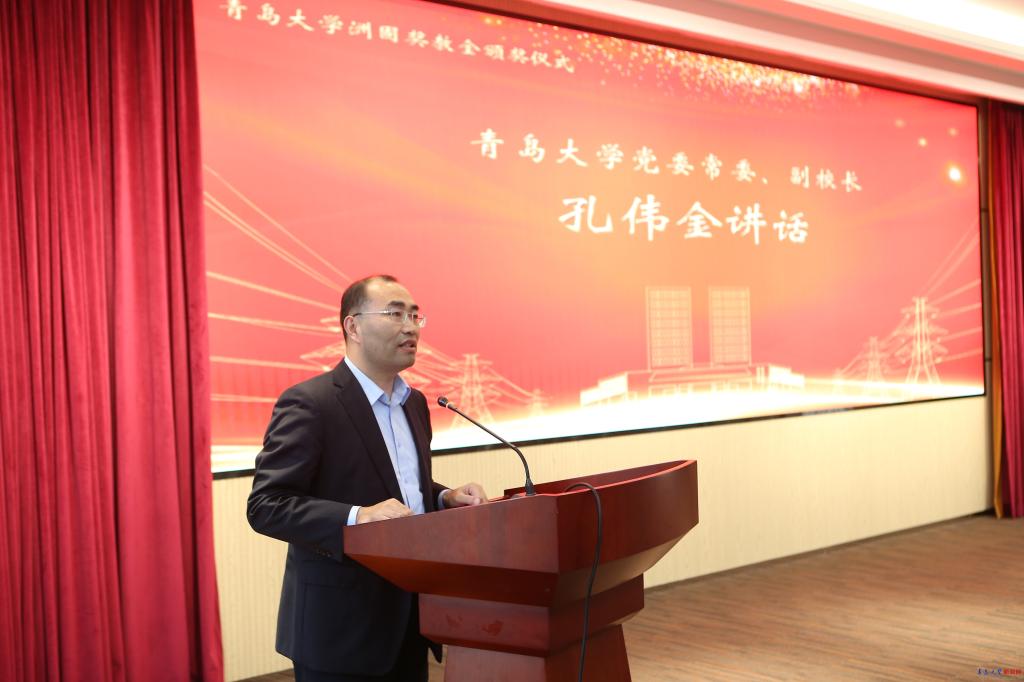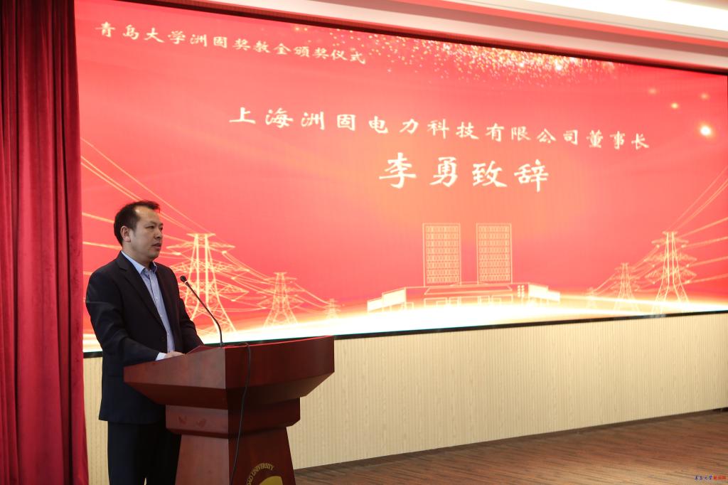 孔偉金指出青島大學正在加快推進高水平大學建設,始終把人才培養工作放在首位,堅持立德樹人根本任務,打造五育并舉育人環境,人才培養質量不斷提高。他對上海洲固電力科技有限公司的捐贈表示誠摯的感謝,希望獲獎教師繼續立足崗位本職,再接再厲,積極進取,努力為國家培養出更多具有“家國情懷、德才兼備”的創新型、應用型、復合型人才,同時祝愿上海洲固電力科技有限公司事業蒸蒸日上。