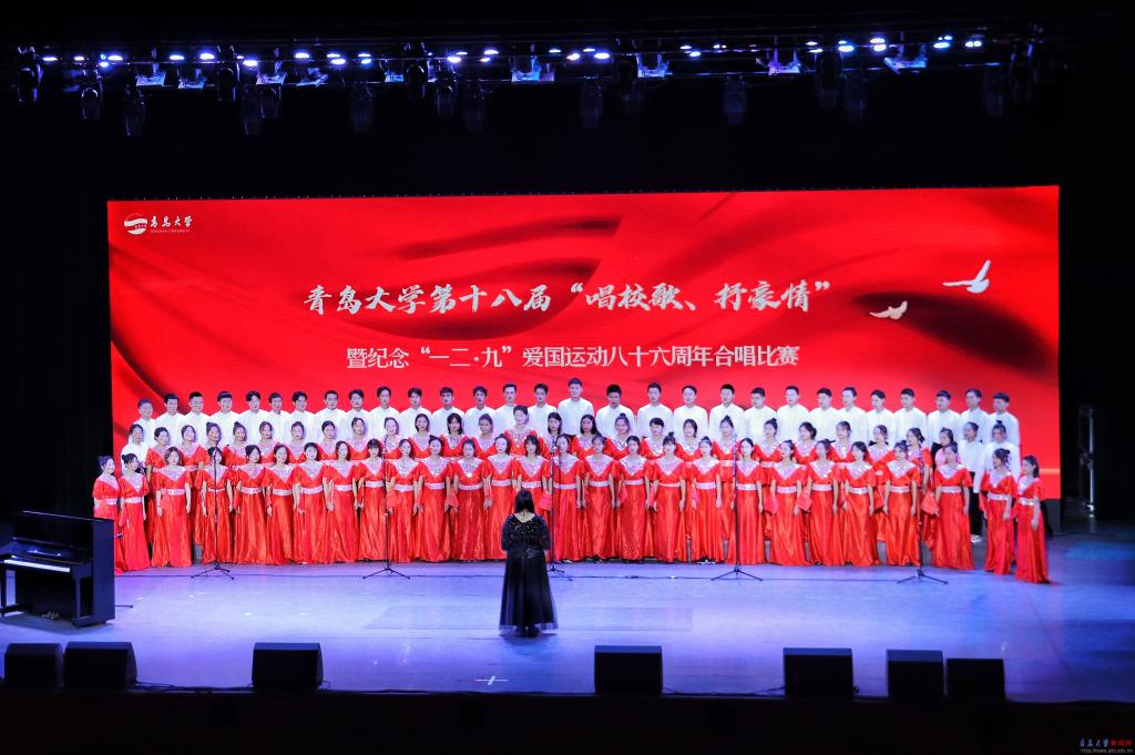 新聞網訊 12月4日下午,由共青團青島大學委員會主辦,青島大學大學生藝術團承辦的青島大學第十八屆“唱校歌、抒豪情”暨紀念“一二·九”愛國運動86周年合唱比賽決賽在青大劇院舉辦。校黨委常委、副校長劉彩云出席并頒獎。學校各部門負責人、各院(部)領導,全體團干部和學生代表觀看了比賽。