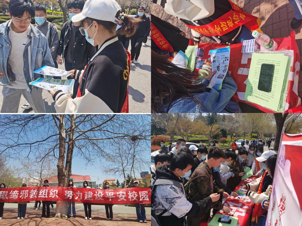 宣傳教育活動(dòng)期間,安全管理處組織在各校區(qū)懸掛反邪教警示標(biāo)語(yǔ)共10余條,發(fā)放《崇尚科學(xué),關(guān)愛(ài)家庭,珍惜生命,反對(duì)邪教》的宣傳單、宣傳掛圖3000余份、《青島大學(xué)校園反邪教倡議書(shū)》2000余份、各類反邪教宣傳單品500余份。校學(xué)生安防宣講團(tuán)積極組織開(kāi)展反邪教專題學(xué)習(xí)活動(dòng),分別面向師范學(xué)院、紡織服裝與工程學(xué)院的同學(xué)們,開(kāi)展了以“崇尚科學(xué),反對(duì)邪教”為主題的線上宣講活動(dòng),組織學(xué)生集中觀看反邪教警示教育片,切實(shí)做到“走進(jìn)學(xué)生、貼近學(xué)生”。