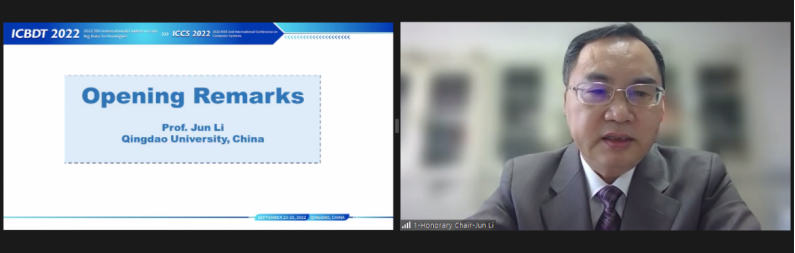 新聞網訊 9月23日-25日,2022年第五屆大數據技術國際會議(ICBDT 2022)、2022年第二屆計算機系統國際會議(ICCS 2022)在青島召開。會議由青島市計算機學會主辦,青島大學計算機科學技術學院聯合主辦,山東大學、濟南大學、山東科技大學、山東理工大學等高校相關學院,以及山東省計算機學會大數據與智能計算專委會等單位聯合協辦。會議榮譽主席,青島大學黨委常委、副校長李軍出席開幕式并致辭。青島大學計算機科學技術學院蘇曉泉教授主持開幕式和主旨報告,會議采取網絡在線方式舉行,近100位專家學者參會。