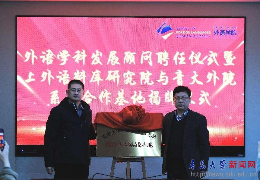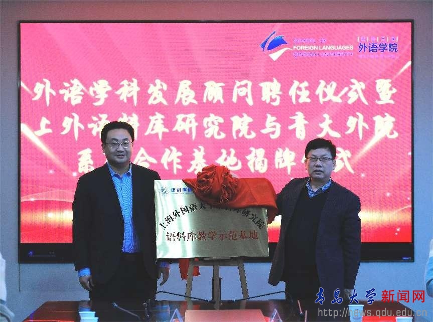 隨后,胡開寶與校相關部門負責人分別為上外語料庫研究院和青大外院系列合作基地揭牌。