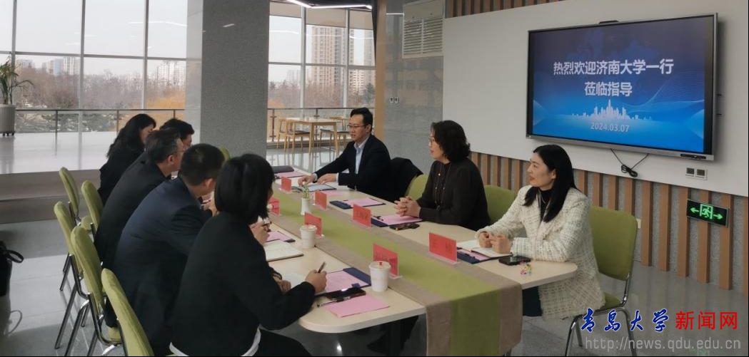 新聞網訊 3月7日,濟南大學團委書記胡春毅、團委副書記兼創新創業學院院長紀祥、團委副書記梁明潛等一行5人來我校調研交流。青島大學創新創業學院常務副院長王海榮、團委書記解文斌、團委副書記王楠,以及創新創業學院相關人員參加交流活動。