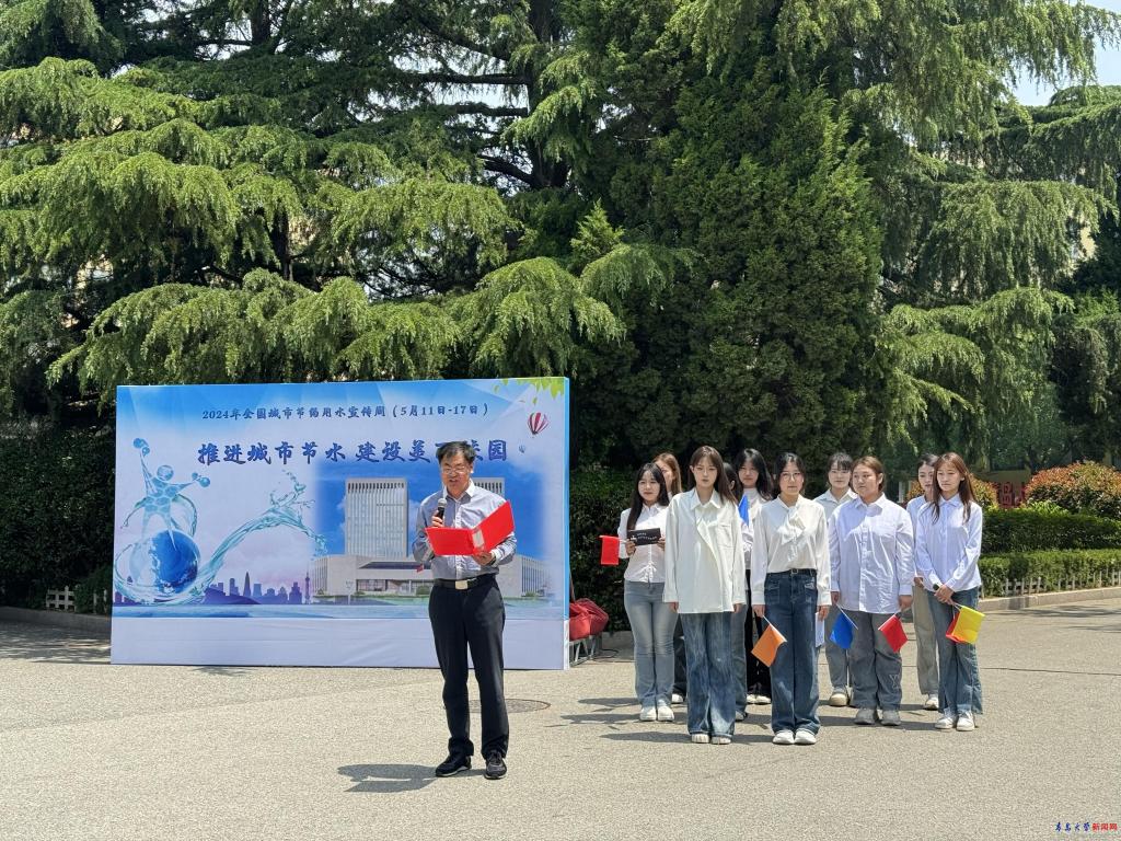 新聞網(wǎng)訊 5月17日上午,在全國第33個(gè)城市節(jié)約用水宣傳周到來之際,由青島大學(xué)后勤管理處主辦,校團(tuán)委、環(huán)境科學(xué)與工程學(xué)院、音樂學(xué)院共同承辦的“助力城市節(jié)水,建設(shè)美麗校園”節(jié)水宣傳周活動(dòng),在浮山校區(qū)后勤服務(wù)大廳前廣場(chǎng)拉開帷幕。后勤管理處處長劉清亮致辭,青島市水務(wù)管理局供水事業(yè)部部長盧正波,環(huán)境科學(xué)與工程學(xué)院黨委書記張作祥、副書記孫竹媛,音樂學(xué)院黨委書記李建新、副書記孫建華,校團(tuán)委副書記王楠,后勤黨委書記王靜及學(xué)生代表等參加活動(dòng)。
