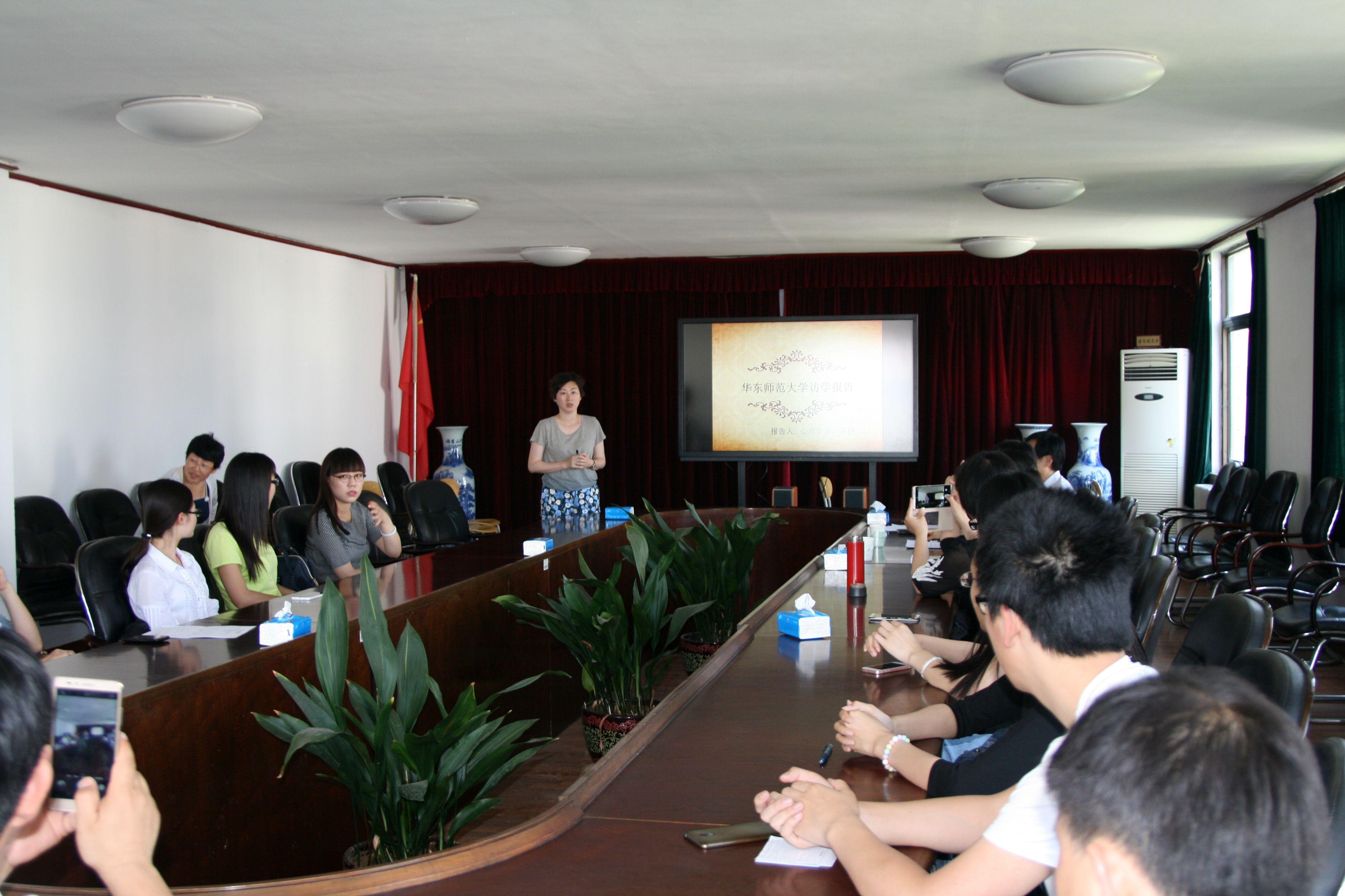 黃艷老師著重匯報了在華東師范大學訪學期間的生活、學習和課外實踐經歷,分析了華東師范大學在特殊兒童心理治療研究方面取得的成功經驗,以及我校在社會實踐教學下一步需努力的方向,另外還與大家分享了自己訪學期間的科研進展情況以及參加專業培訓課程等諸多收獲。