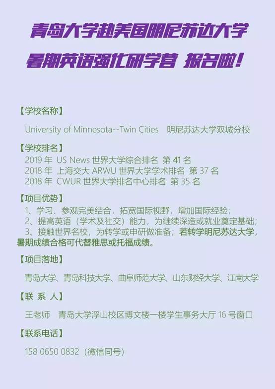3、接觸世界名校,為轉學或申研做準備;若轉學明尼蘇達大學,暑期成績合格可代替雅思或托福成績。