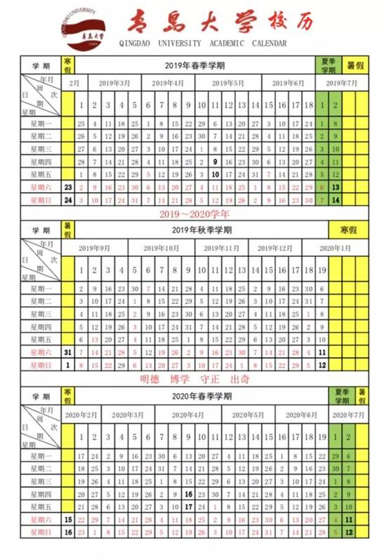 4. 2020年清明節、勞動節和端午節的放假時間以學校發布的通知為準。